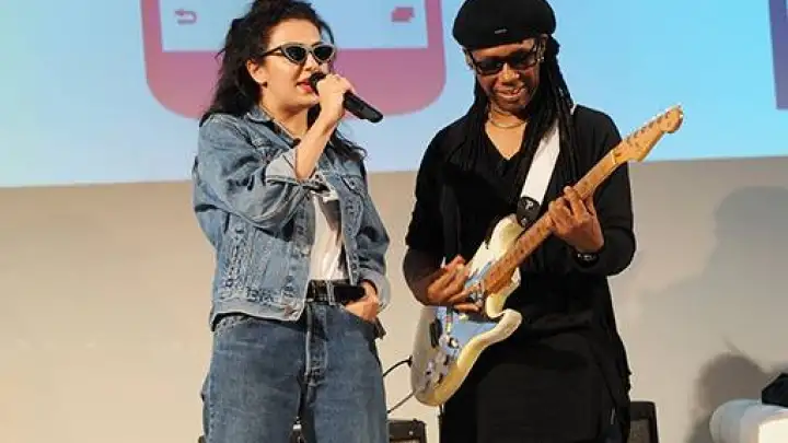 Charli XCX esteve ontem (19) na festa de lançamento do aplicativo MixRadio ao lado do lendário guitarrista Nile Rodgers.